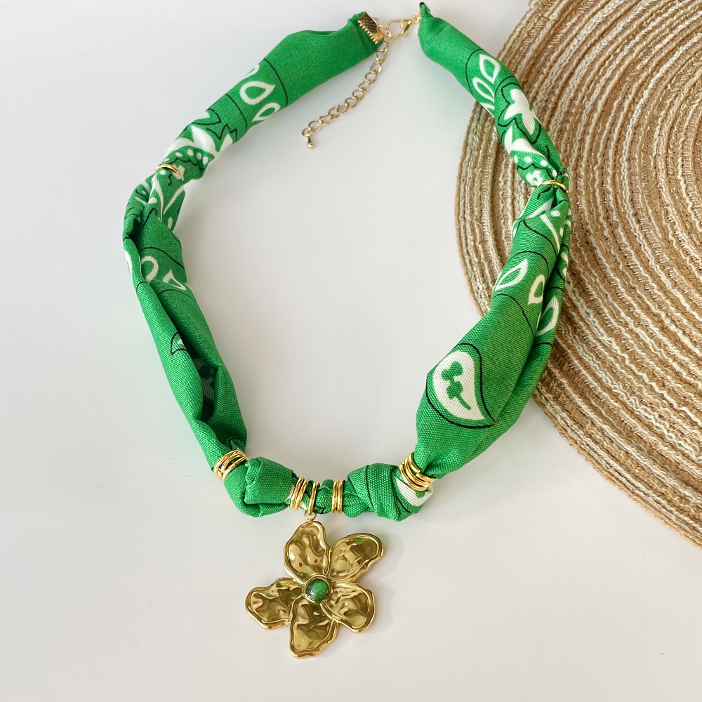 Green Floral Sun, Ballon Dog, Conch, Flower Scarf Necklace