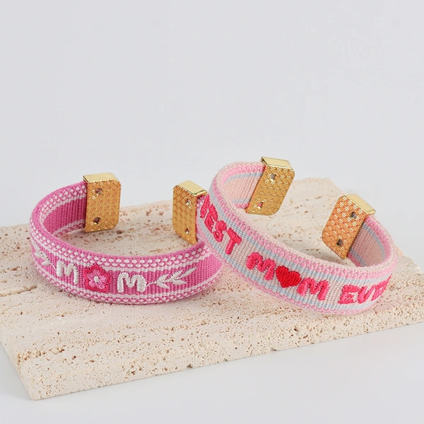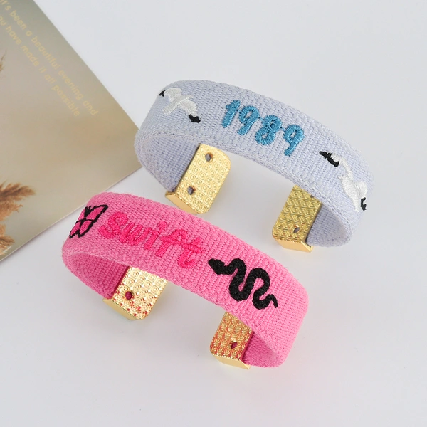 Woven Open Cuff Bracelet with Embroidered Lettering